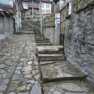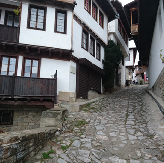 Coborând și apoi urcând străduțele abrupte din piatră, admirăm cursul sinuos al râului Yantra și clădirile așezate pe pantele terasate.